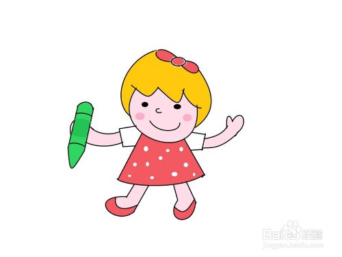 最后涂上喜欢的颜色,这样画拿画笔的女孩就画好了。
