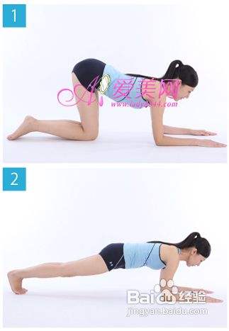 2、左右脚依次往后蹬出,伸直双腿,让全身连成直线,但手臂始终屈肘扶地,保持20秒后恢复跪地姿势,重复3次拉伸动作。