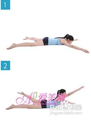 1、双腿甚至大打开地俯卧在地上,手臂屈肘叠放,托着下,左右腿成90度以上的夹角。