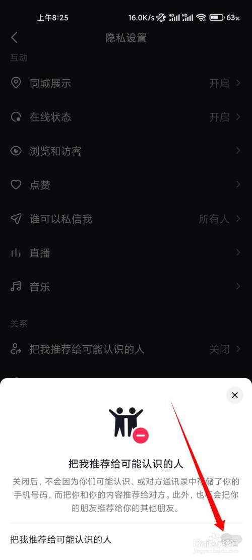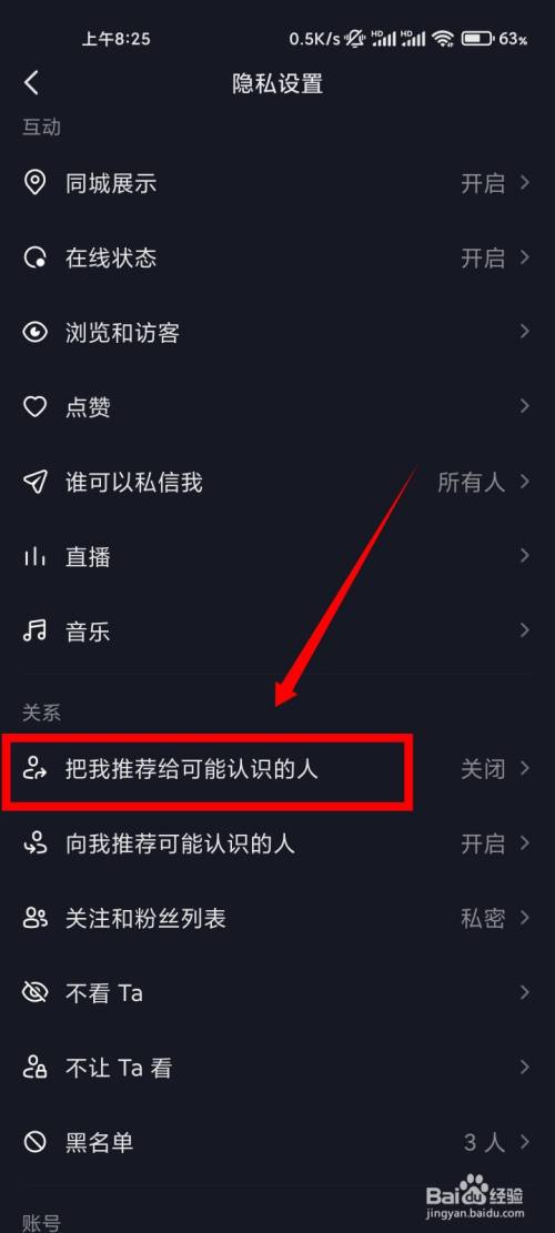 在抖音中想要屏蔽熟人不让他看到,需要关闭推荐开关即可实现,以下是具体的操作步骤: