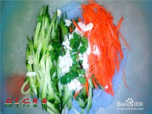 把黄瓜和胡萝卜切成丝