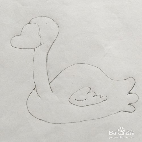 第一步:用铅笔先画出天鹅身子的轮廓,如下图所示。