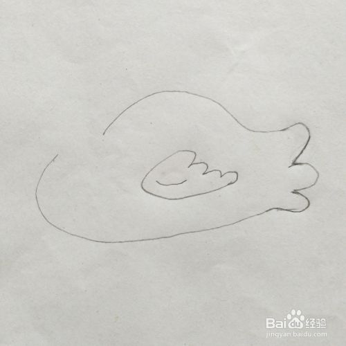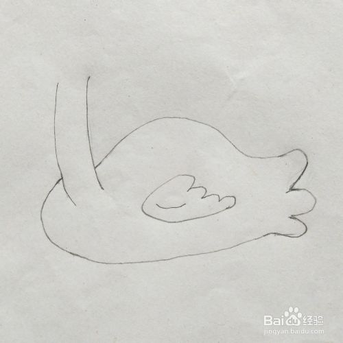 第二步:在身子里面画出天鹅的翅膀,如下图所示。