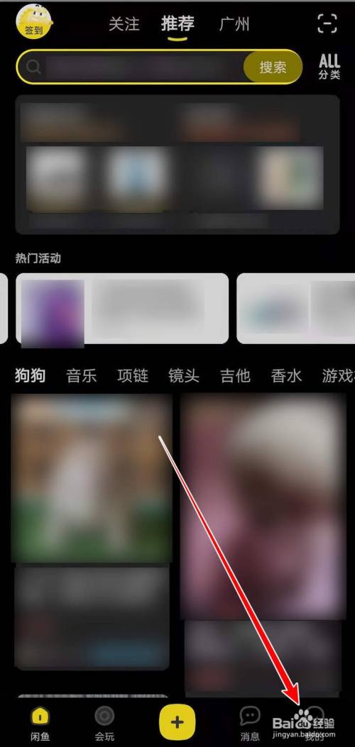 在闲鱼APP首页,可粗略分四个部分,点选右下角我的;