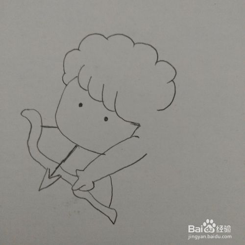 我们在他的手里面画上一张挂好弦的弓箭