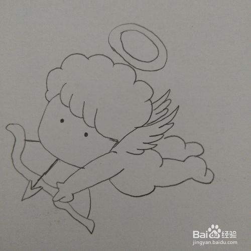 最后我们再在小天使的头上画上圆形的光环就完成了。