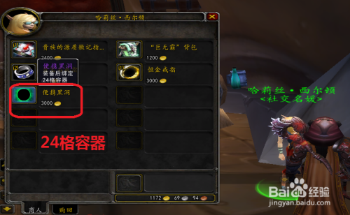 这个人出售的物品除了有20个背包还有24格的背包便携黑洞。需要金币3000金币。