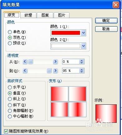 右键单击该形状,修改其填充色,为双色。具体步骤,如图所示。