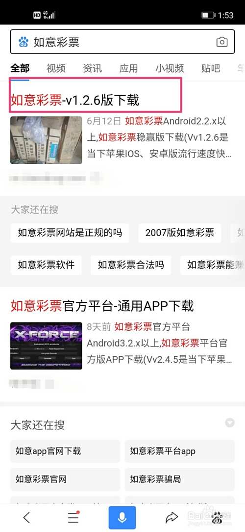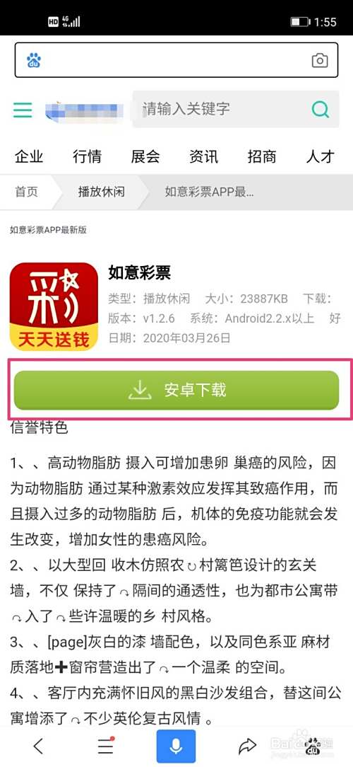 点击如意彩票v1.2.6下载,如下图,看到安卓下载
