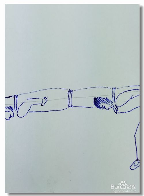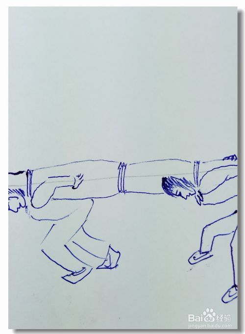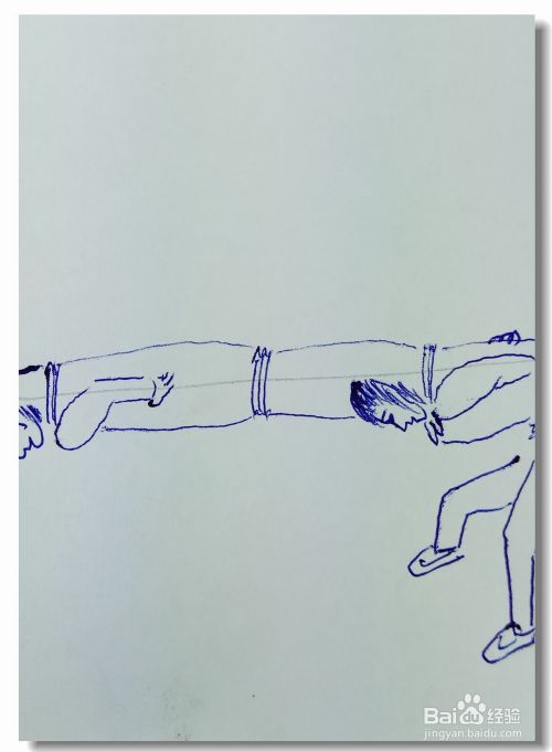 画出这两个人的腿部,再用曲线和弧线画出它们的脚,要注意一下动作姿势。