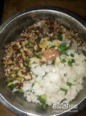 瘦肉洗净剁碎,用2/3汤勺的蚝油,2/3汤勺的生抽,0.5汤勺淀粉,香油抓拌均匀,然后放入剁碎的香菇,荸荠,姜,葱花,盐,鸡精,糖抓拌均匀做成馅料