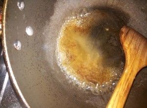 用一汤勺的淀粉和三汤勺清水调成水淀粉。把水淀粉放入锅中煮至沸腾,要不停的搅拌,以免糊锅,同时加入1/3汤勺的生抽和1/3汤勺蚝油。待到水淀粉煮开后就可关火