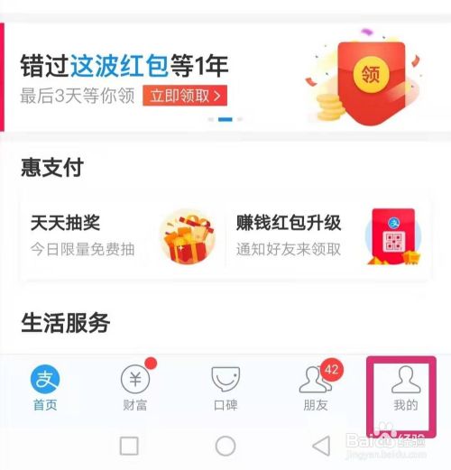 在支付宝主界面中点击“我的”。