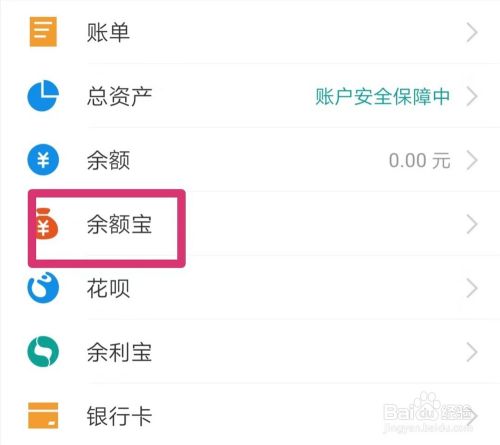 2.点击“余额宝”,选择“转出”。
