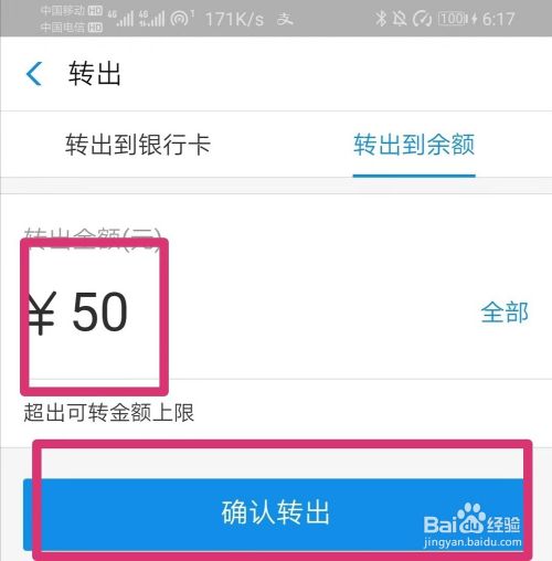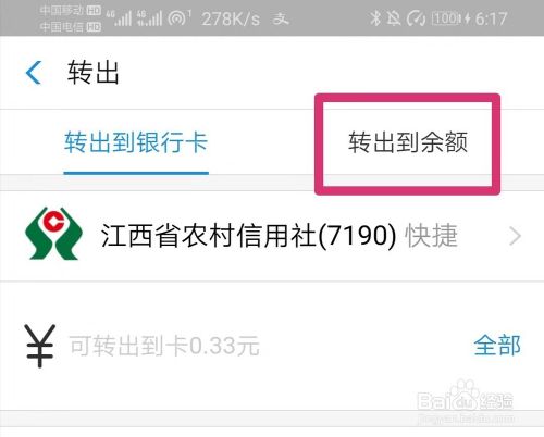 转出金额的时候一定要注意点击“转出到余额”哦!