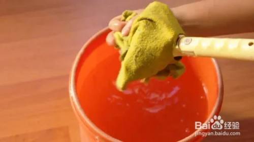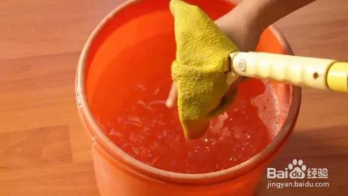 将拖把浸湿并拧干。将海绵拖把浸在热水里,然后拧干,让它呈微湿状态。
