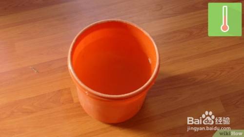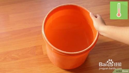 装一桶热水。将4毫升的温水或热水倒入一个大桶里。