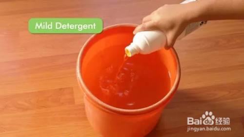 添加温和清洁剂或婴儿洗发精。把两汤匙(30毫升)的婴儿洗发精或温和洗碗液拌入热水里。