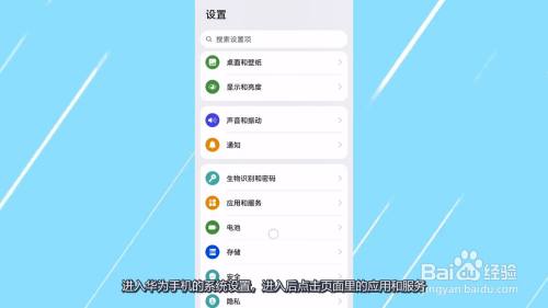 进入华为手机的系统设置,进入后点击页面里的应用和服务。