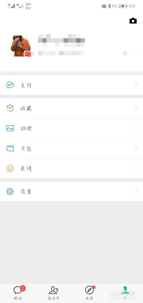 打开微信后,在屏幕下方四个导航键,微信、通讯录、发现、我中,选择我点击打开,进入到我的个人主页。