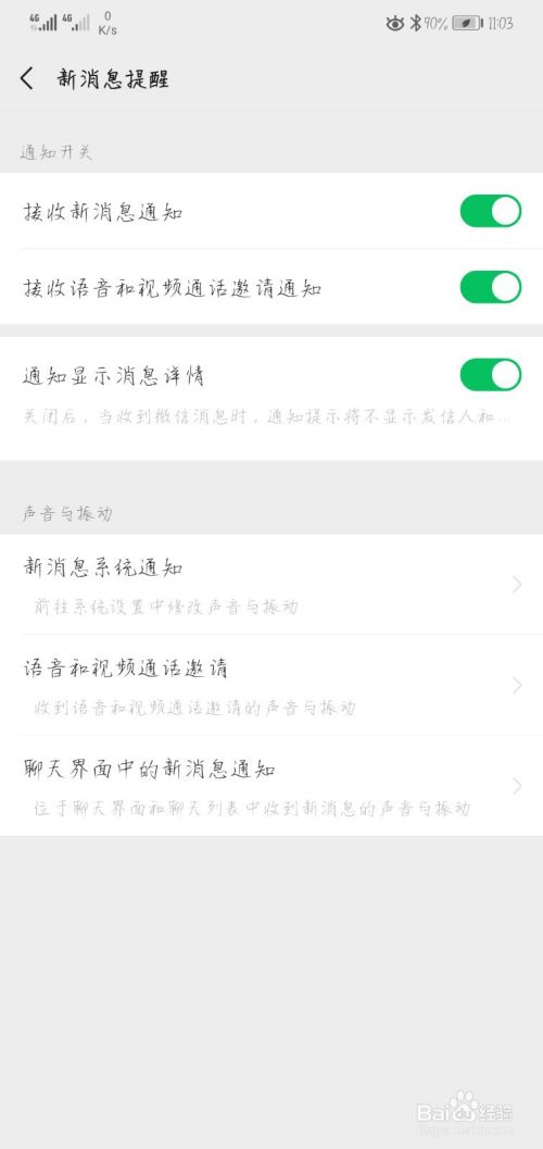 打开消息通知后,我们可以看到其中又接收新消息通知,以及通知显示消息详情等等,我们将显示消息详情关闭,打开接收消息通知即可。