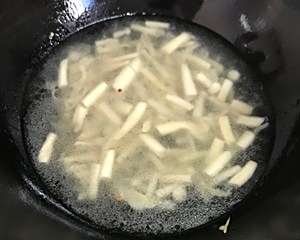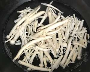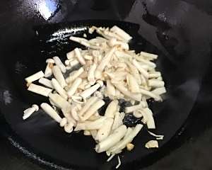 锅中倒油,放入蒜末爆香。加入海鲜菇,翻炒至海鲜菇出水。