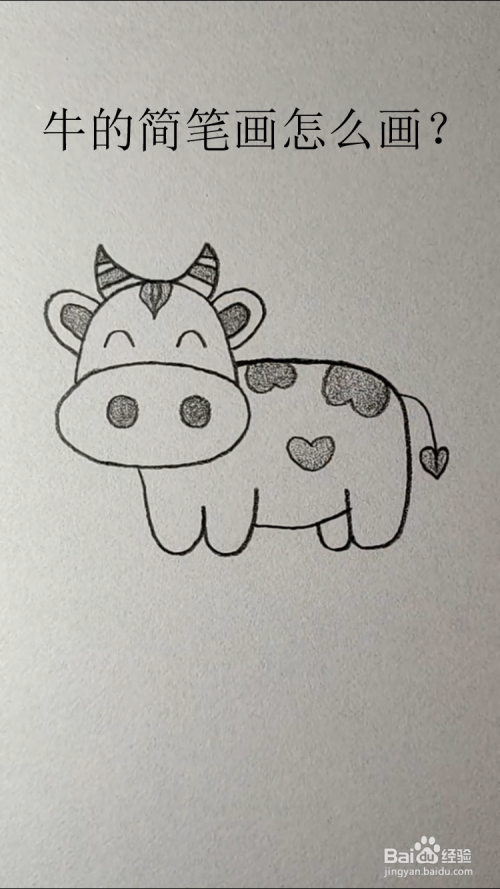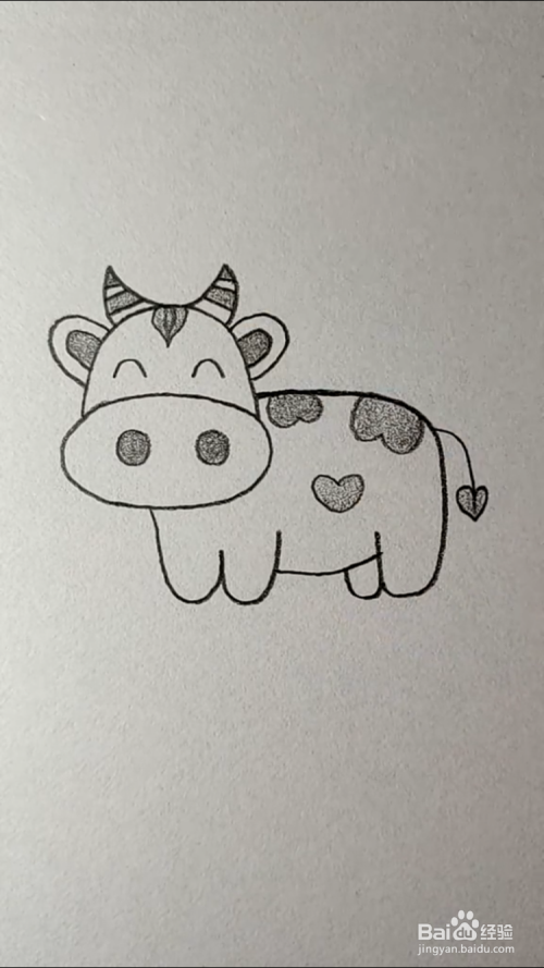 最后为牛身上涂上斑纹,如下图所示。这样牛的简笔画就完成了。