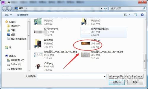 在文件选择窗口中选择一张图片,比如小编选择电脑桌面上的一张示例图片;