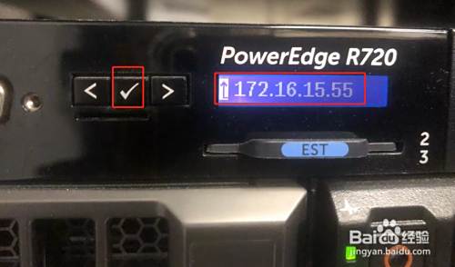 通过服务器的前面板LCD查看idrac的IP地址,前有3个按键,操作:按打钩键--View--iDRAC IP--IPV4--IP,就会显示IP地址,我这里已经修改了IP地址:172.16.15.55,出厂默认IP地址:192.168.0.120。如图所示: