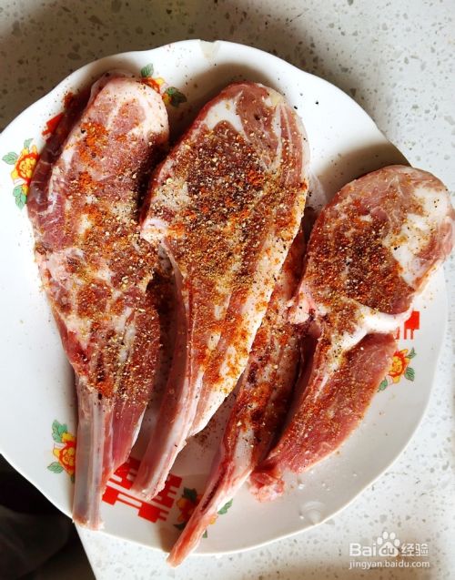 把孜然粉,黑胡椒,盐,辣椒粉均匀的涂抹在羊排上,腌制十五分钟到半个小时