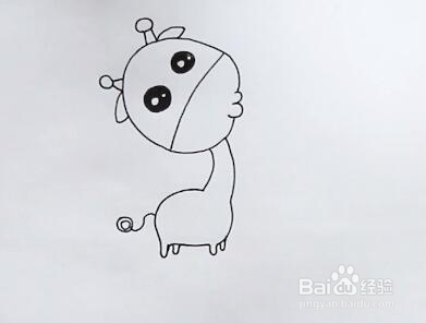 画出长颈鹿长长的脖子和身体画出来,四条腿和尾巴一起画