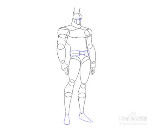 绘制肩膀,手臂和腿部的最终轮廓。添加面罩和皮带细节。