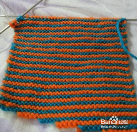 首先第一步我们就要想打毛线袜子那样起针了,大概40针左右,然后两色各织30行,后面开始加针,织第一针、第二针加一针、织到最后剩2针时不织,后面的都是织第二针时加一针 、最后两针挑出不织。
