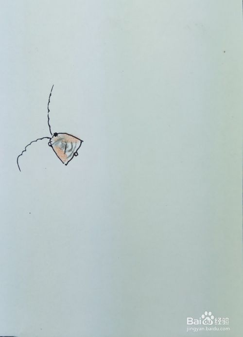 在白纸上用线条和曲线画出萤火虫的头部轮廓,并画出它的长长的触角部分,还可以涂上色彩。