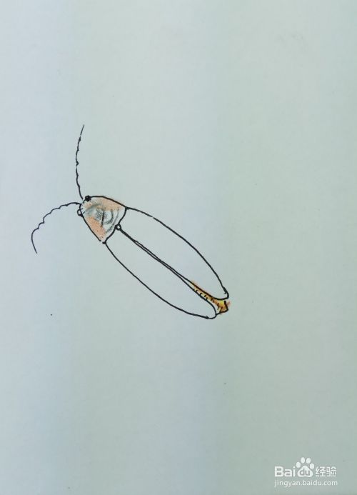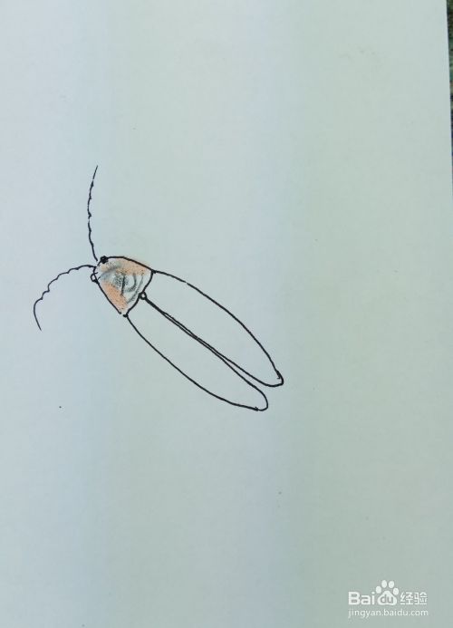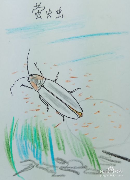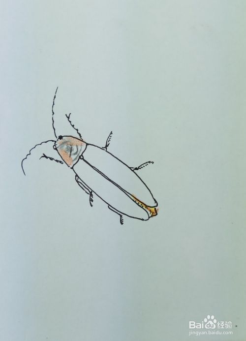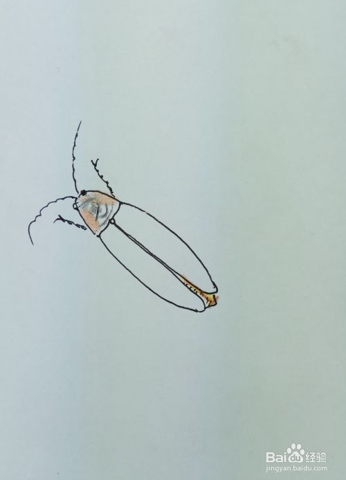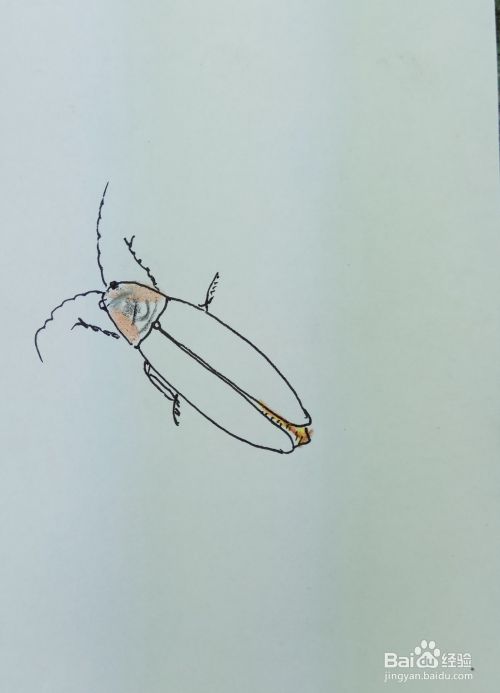 再画出萤火虫后边的两条腿,萤火虫是多足动物。修饰一下细节,一副活灵活现的萤火虫就出现在我们的面前了。