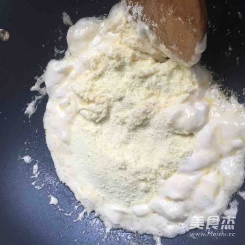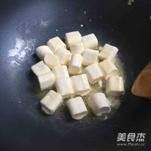3黄油溶化后加入棉花糖,注意翻炒,全程小火。