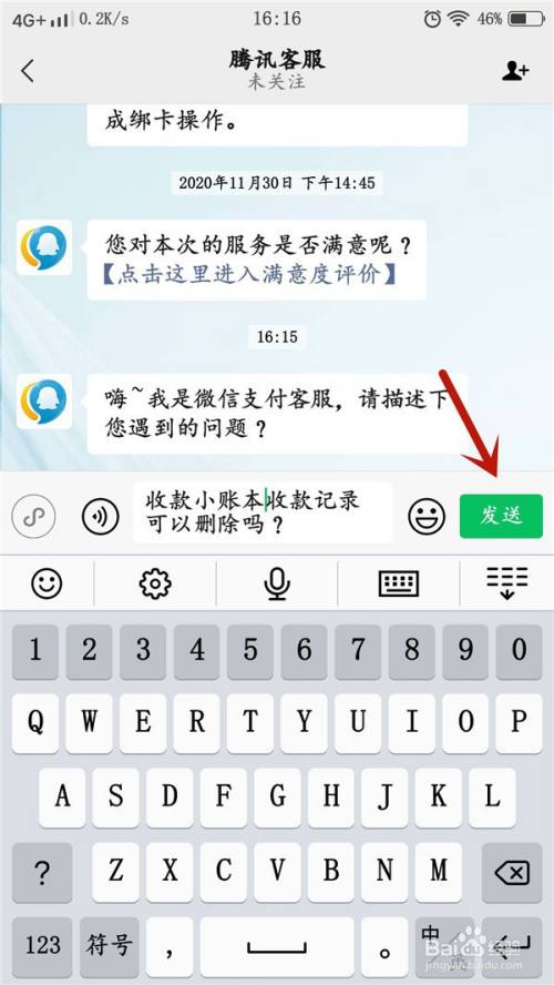 输入问题:收款小账本的收款记录可以删除吗,再点击【发送】。