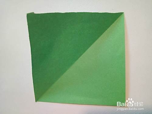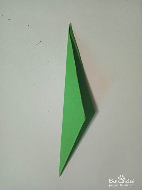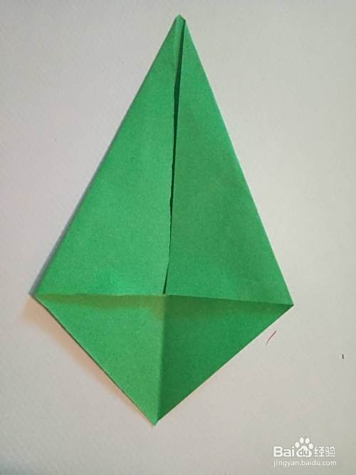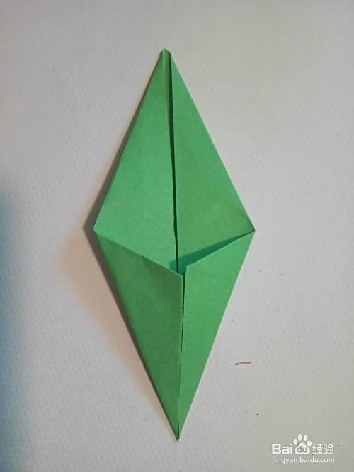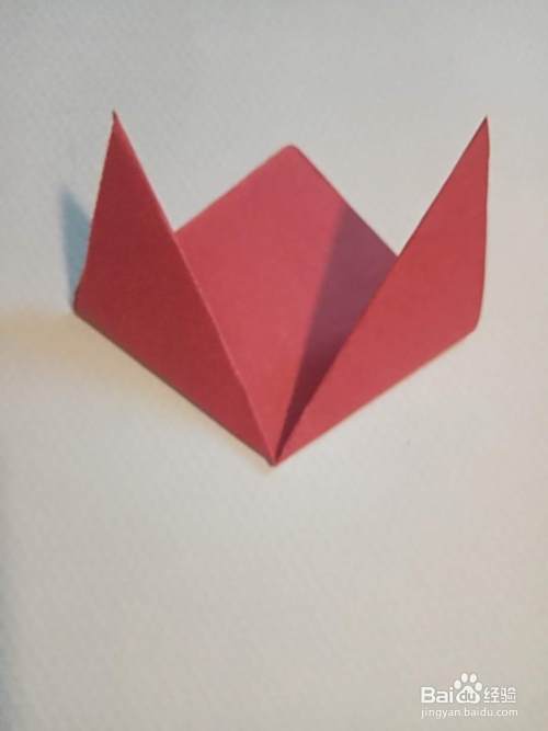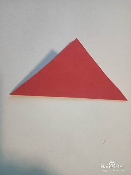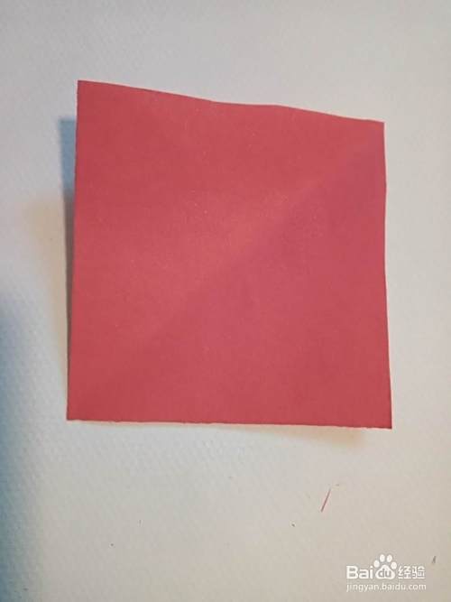 取红色正方形卡纸一张,两角对折后再将两边向中间斜对折,如图。