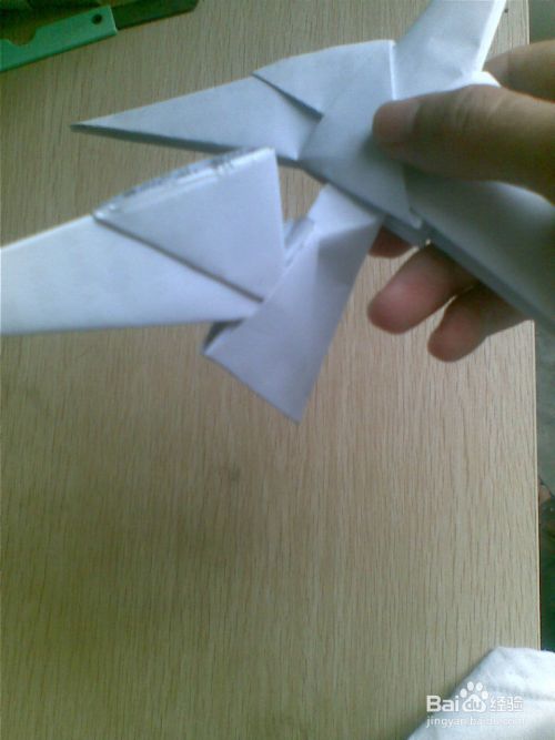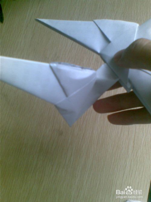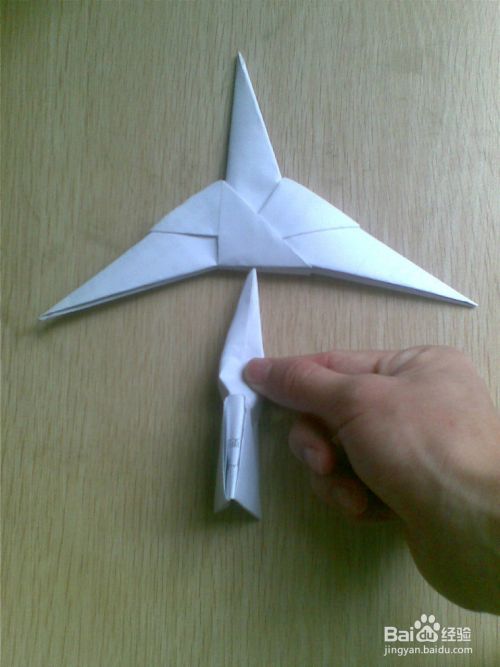 接下来就是把第三个如图所示把它往下压,压扁就行,目的是为了能把它插进飞机头部
