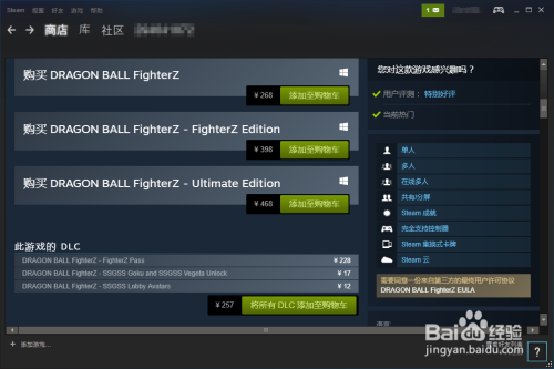 这是龙珠斗士的购买界面,现在有3个版本和3个DLC