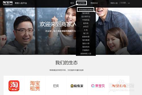 首先百度搜索【淘宝网的商家入驻平台】网址