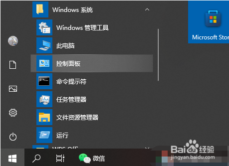 01.首先打开win10系统的开始菜单,在windows系统列下找到控制面板打开。