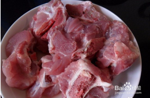 锅里放水,放入花椒粒,生姜,葱结,烧开水后放入骨头块淖水,并冲去浮沫。