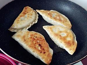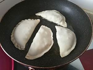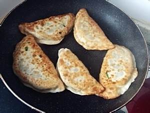 锅里放油,不要太多,放入菜盒子先煎一面,火稍微小一点,注意看火候