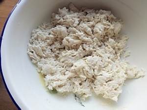 开始和面,一点点倒弄成面梭梭