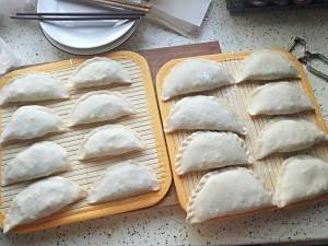 开始包,这会再在韭菜料里放入盐,不要太多,韭菜很鲜的