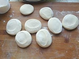 面团取出,像做饺子包子一样弄自己喜欢的大小。我自己不要太大,两三个就吃饱了,我的是大概这个调料瓶的高度11厘米