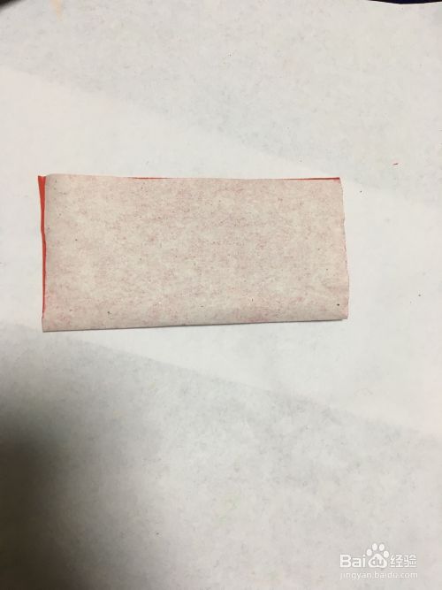 取红色正方形彩纸两边对折。