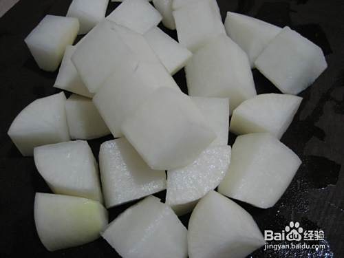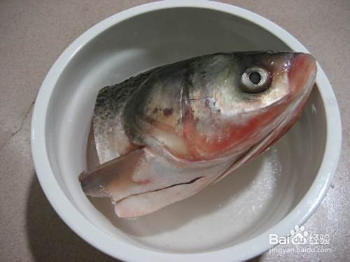 新鲜大鱼头洗净,去鳞、去鳃;姜拍开;白萝卜洗净,切在块。备用。