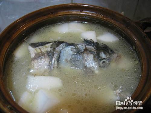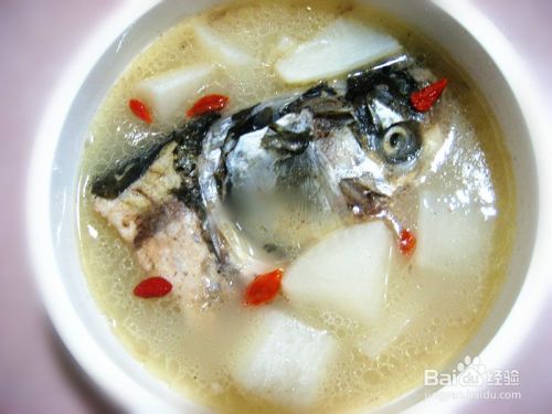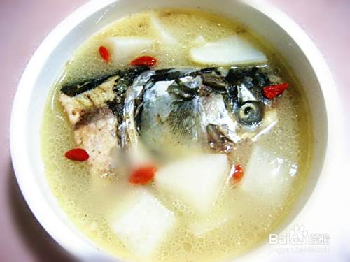 鱼头肉质细嫩,营养丰富,可增强记忆力,让人变聪明。白萝卜有止咳化痰的作用。这道浓汤大鱼头汤汁浓白,鲜香。